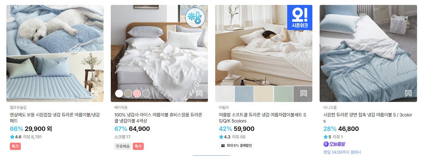 여름 이불선택에 도움이 되셨길 바랍니다.