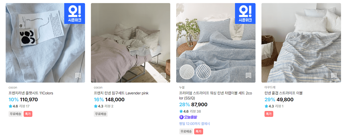 입추가 지나도 더위가 가시질 않습니다. 입추가 지나면 아침저녁 선선한 바람이 불곤 했는데요, 여전히 밤은 열대야로 힘들고, 낮에는 폭염이 이어지고 있습니다. 어쩌면 여름상품을 찾아보지 않을 시기에 오히려 무더위에 지쳐 밤에 잠이라도 푹 자고 피로를 풀고 싶은 마음이지요. 그래서 대표적인 여름이불을 소재별로 리넨 인견(레이온) 모달 텐셀 리플과 시어서커로 정리해 보았습니다.